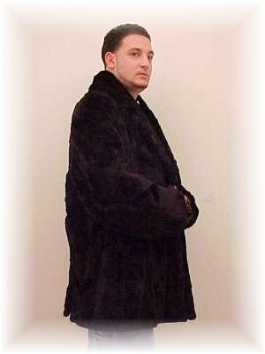 Men's Black 3/4 Length Sheared Mink Fur CoatAvailable In All Colors Sectional Mink Fur CoatSheared Notch Collar Color Shown is Ranch 3/4 Length Optional Back Slit Fur Origin: USA Manufacturing: USA