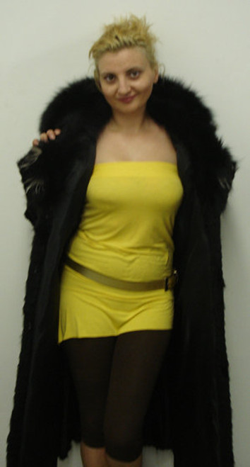 Sheared Black Fox Coat with White Trim