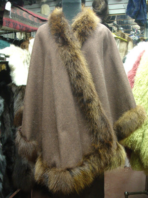 Dyed Raccoon Fur Cape Taupe Cape Trimmed with Racccoon Cashmere / Wool Blend One Size Fits Most Fur Origin: Norway Manufacturing: USA