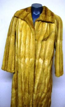 Golden MInk Raccoon vintage Fur coat Stand Up Collar Stright Sleeves Size: Large Light, Very Warm & Comfortable Hook & Eye Closure Fur Origin: USA Manufacturing: USA Vintage is a Pre-Owned Or Estate Piece One Of a kind, From Our Fur Collections Shoulder...