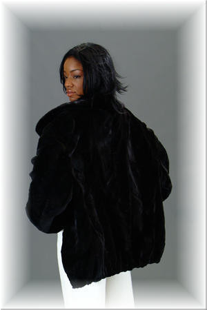Sheared Mink Fur Bomber Jacket Mink Fur Jacket Sectional Full Skin Mink Fur Collar Wing Collar Elastic Sleeves Elastic Bottom Length 30" Sleeve Length 35" Color Shown Is Ranch Zipper Closure Fur Origin: USA Manufacturing: USA